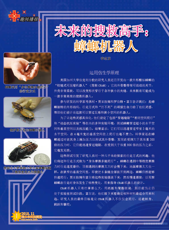 [趣闻播报]-未来的搜救高手:蟑螂机器人